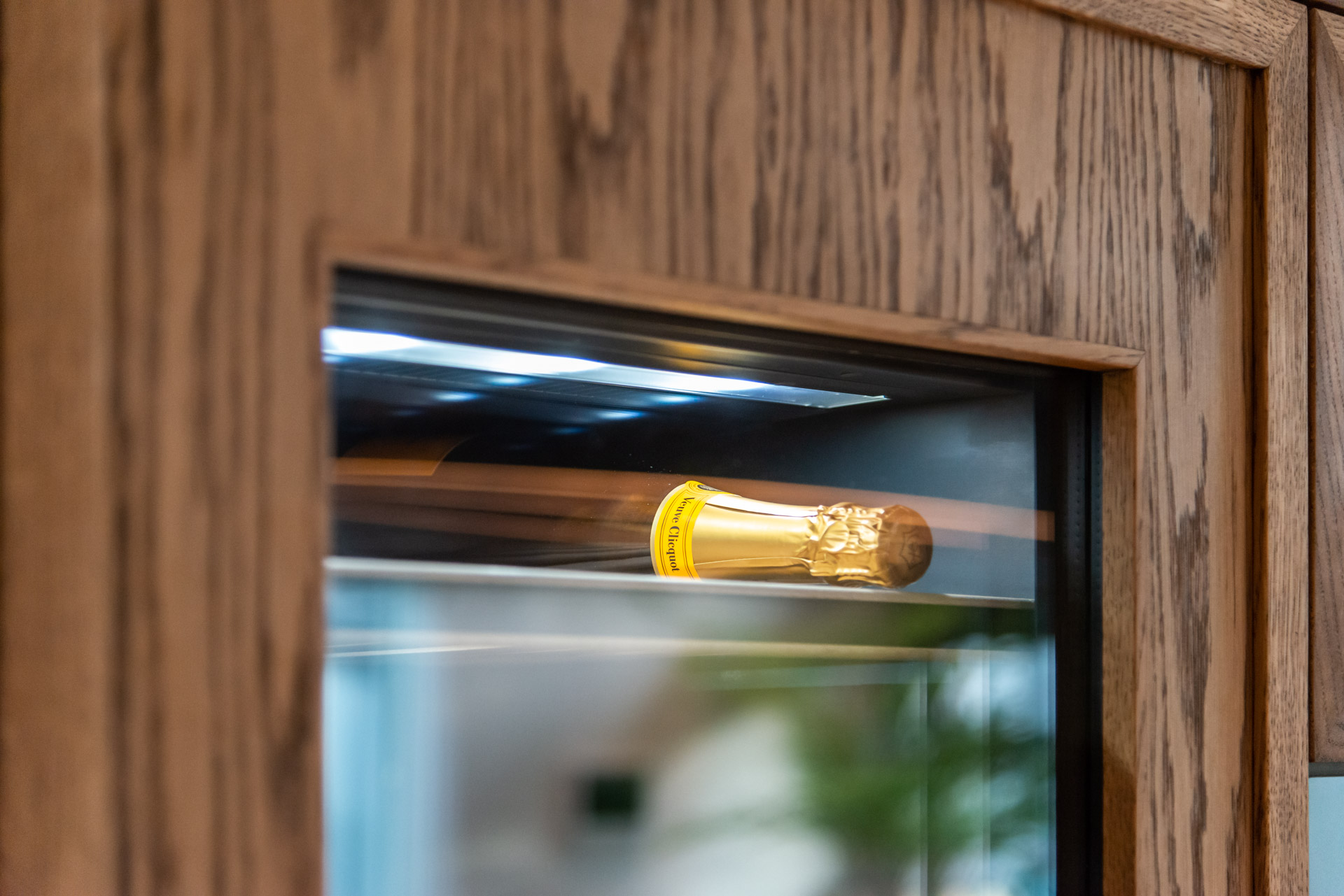 De uitdaging in deze moderne villa in Schagen? Het was een akoestisch schuin plafond en de klant wilde een zwaar plafondrek. Qua gevoel zochten ze een gezellige, licht Oostenrijkse sfeer als basis. Eikenhout werd de basis: meteen warm, meteen karakter. Eikenhout vormt een rode draad in het interieur – van de eikenhouten fronten tot de lattenwand die keuken en woonkamer subtiel van elkaar scheidt. Het warme hout brengt direct een gezellige sfeer in de ruimte, terwijl de strakke, greeploze bediening van de fronten zorgen voor een moderne uitstraling. Een perfecte balans tussen stijlvol en uitnodigend.